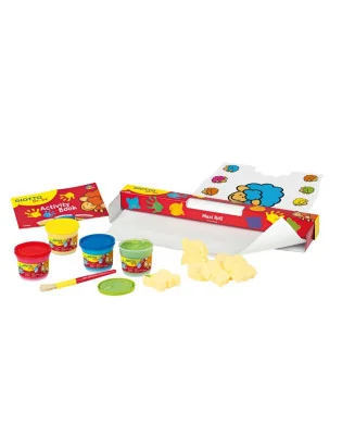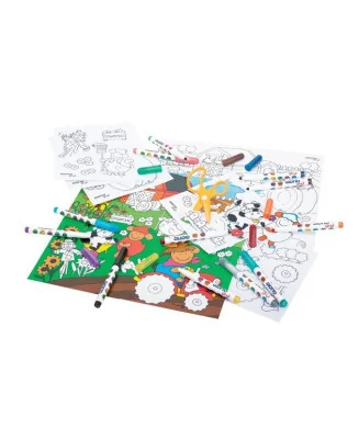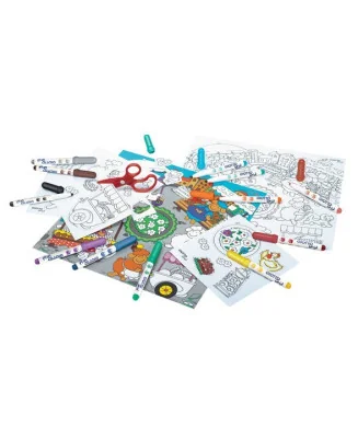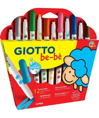 Conjunto completo Giotto Bebé, especialmente desenhado para os mais pequenos da casa, contém 10 super lápis de cera, 12 super marcadores, um batom de cola, um apara-lápis e um álbum com 5 fichas para colorir.